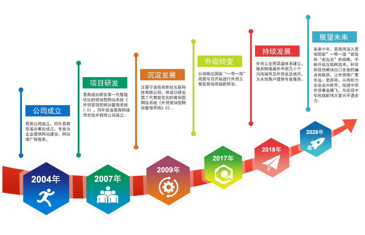 寧波易商世紀(jì)互聯(lián)科技有限公司是一家以實現(xiàn)企業(yè)全球化經(jīng)營和品牌價值持續(xù)增長的互聯(lián)網(wǎng)服務(wù)技術(shù)創(chuàng)新型公司,致力于為中國制 造外貿(mào)企業(yè)量身定制品牌化、本土化、多渠道、全方位、系列海外網(wǎng)絡(luò)營銷整體解決方案。